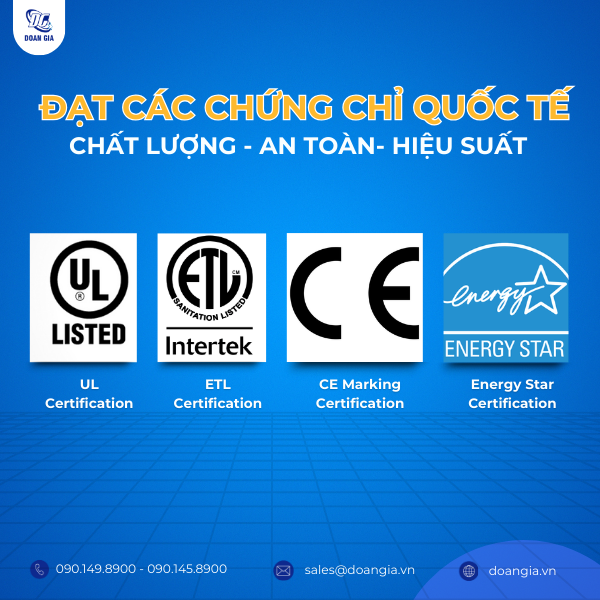 Energy Star: Chứng chỉ Energy Star được cấp cho các thiết bị tiết kiệm năng lượng, đảm bảo hiệu suất sử dụng năng lượng cao và giúp giảm thiểu tác động đến môi trường. Sản phẩm có chứng nhận Energy Star giúp người tiêu dùng tiết kiệm chi phí năng lượng và bảo vệ môi trường.