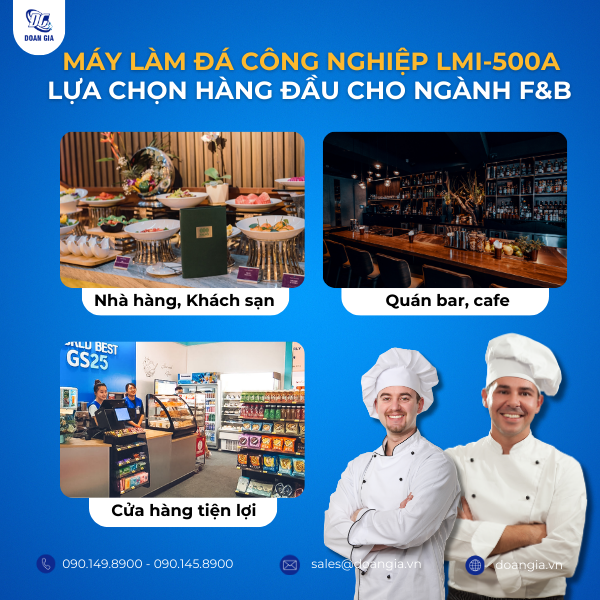 Liên hệ ngay với Đoàn Gia qua hotline: 090.149.8900 để được tư vấn chi tiết và nhận những ưu đãi đặc biệt, giúp doanh nghiệp của bạn nâng cao hiệu quả sản xuất đá viên với máy làm đá LASSELE LMI-500A + LB-300S