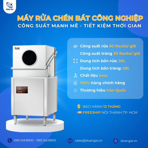 Nếu bạn đang tìm kiếm máy rửa bát công nghiệp hiện đại, chi phí cạnh tranh, hãy liên hệ ngay với Đoàn Gia qua hotline 090.149.8900 hoặc ghé thăm showroom để được báo giá và tư vấn các chương trình ưu đãi hấp dẫn.
