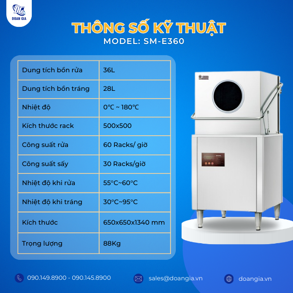 Bạn hãy liên hệ ngay với Đoàn Gia qua hotline 090.149.8900 để nhận tư vấn chi tiết và báo giá ưu đãi để sở hữu máy rửa chén bát SOLOMON SM-E360 chất lượng nhất!