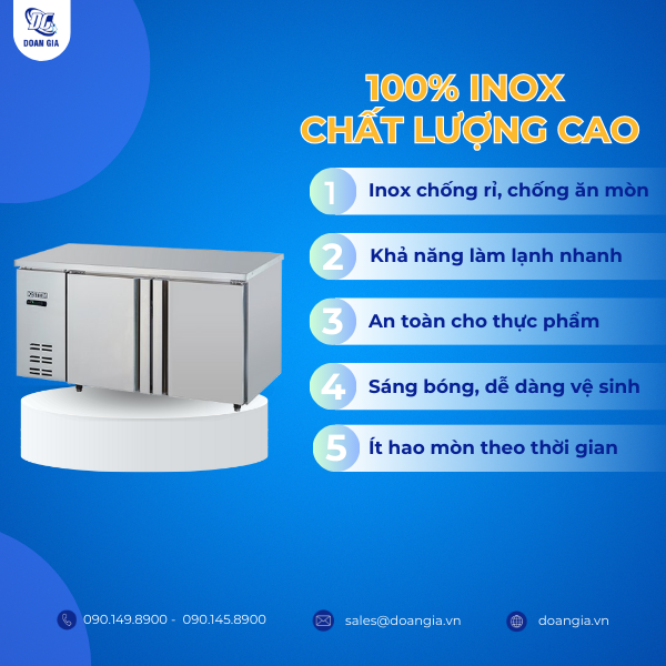Để được tư vấn chi tiết và nhận báo giá chính xác về tủ bàn mát 1m5, vui lòng liên hệ hotline 090.149.8900. Hoặc ghé thăm Showroom Đoàn Gia tại N7 Cư Xá Tân Cảng, Điện Biên Phủ, P.25, Q. Bình Thạnh, TP. HCM để trực tiếp trải nghiệm và lựa chọn sản phẩm phù hợp.